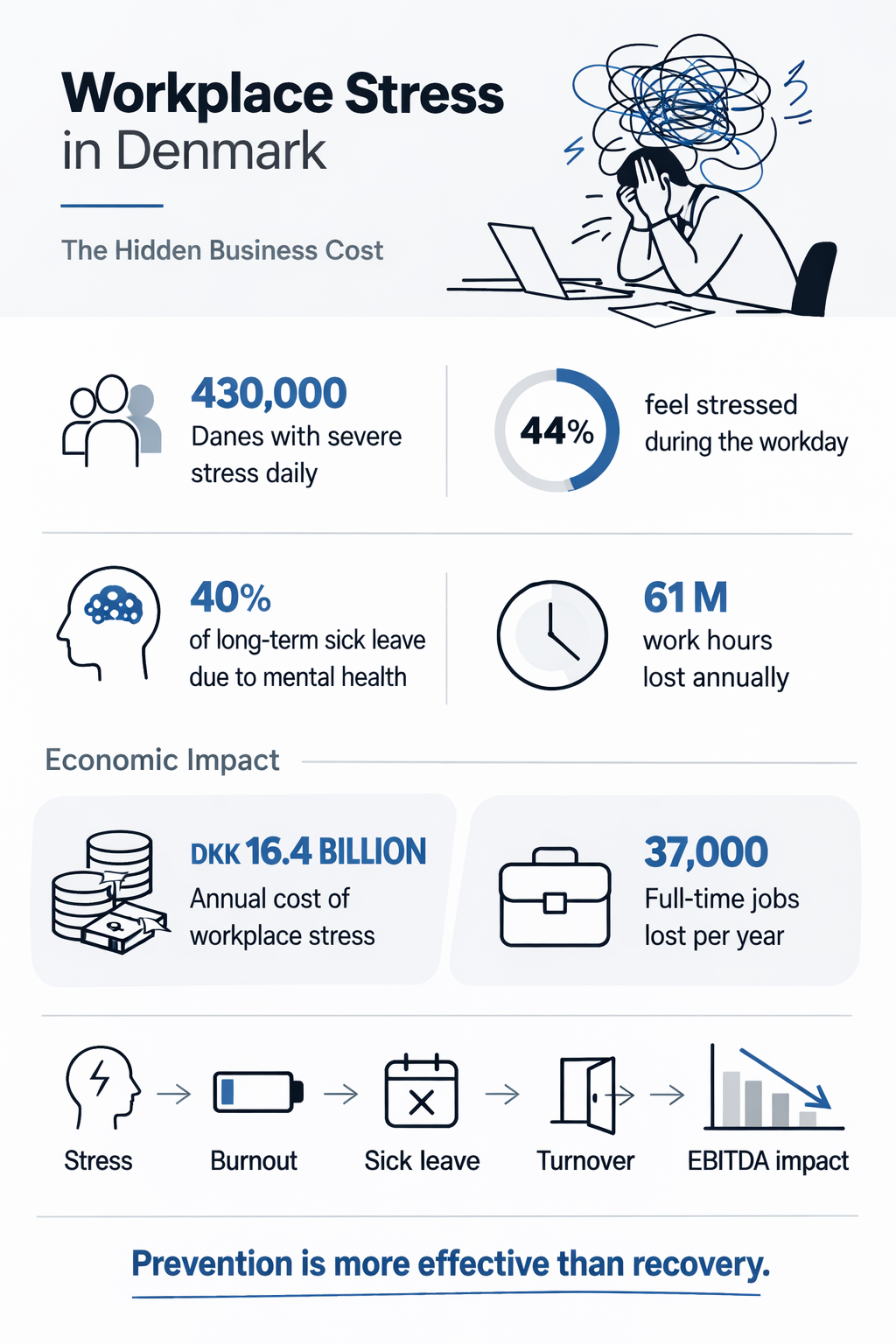Stress, Burnout, Sick leave isn't an employee's personal problem; it's a direct business loss. Look at the scale of the phenomenon in Denmark: